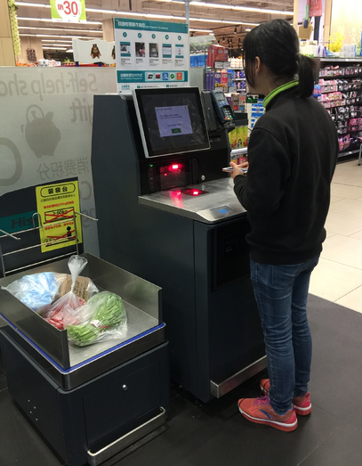 在蘇州天虹超市開通了自助結(jié)賬通道,顧客可以自助掃描產(chǎn)品條碼,實(shí)現(xiàn)自助結(jié)算服務(wù),很好地解決了顧客天天都要排大長隊(duì)付款的問題。