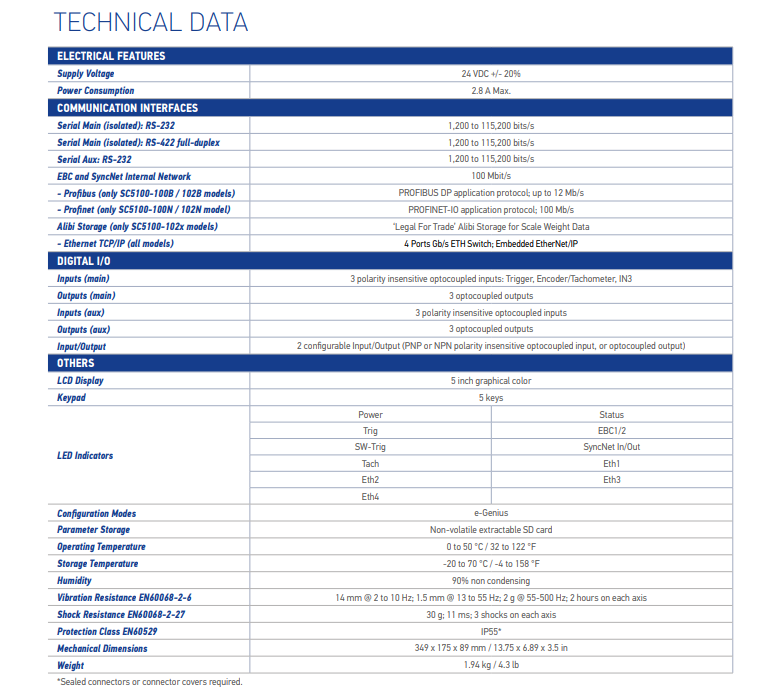 得利捷SC5100固定式工業系統控制器的設計包含了整個固定式工業掃描器組合(DS/DX系列激光閱讀器、AV系列掃描器、DM系列體積測量儀)的本公司產品集成,且支持第三方組件(如RFID、秤、網絡相機)的集成開放接口。其結果是完全支持的系統解決方案(DWS=Scan-Dim-Weight,BHS=Baggage Handling等),并為新的應用解決方案提供了可能性。 一個完全可配置的嵌入式4口千兆以太網交換機,可選的現場總線模塊和擴展的內存強有力的說明了它可以靈活地支持復雜的解決方案,并為本地和遠程監控提供先進的工具(時刻應對物聯網和工業4.0環境)。